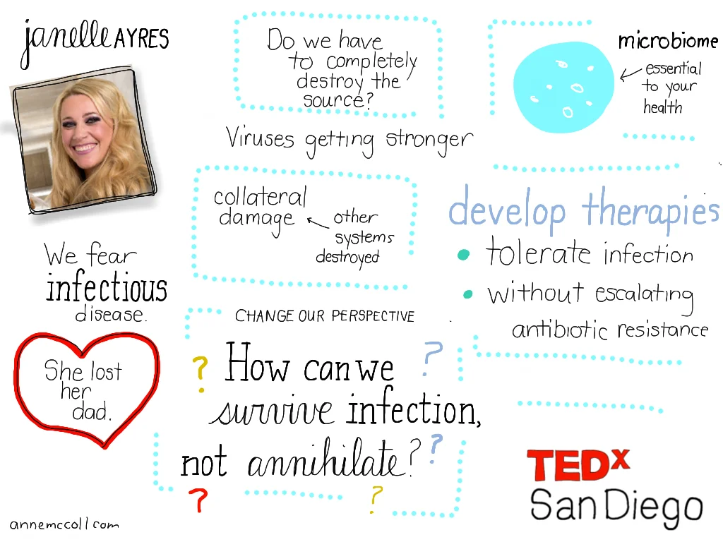 Janelle Ayres, assistant professor at the Salk Institute for Biological Studies, proposes that we have been approaching infectious diseases from the wrong perspective. She asks: how can we survive the infection, not just fight it.