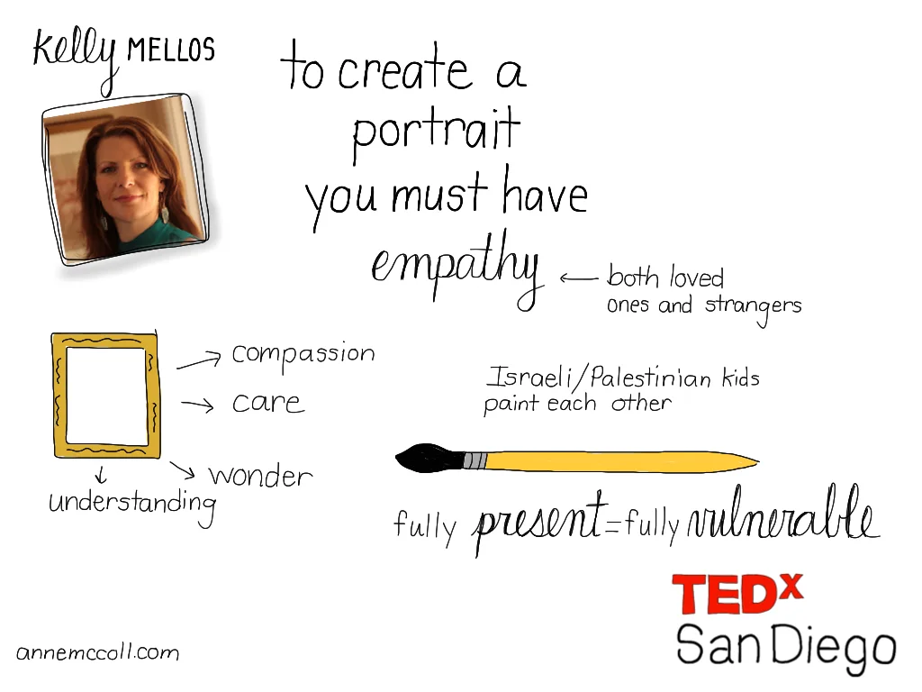 Kelly Mellos is an artist who encouraged Israeli and Palestinian teens paint portraits of each other and in the process everyone gained more empathy.